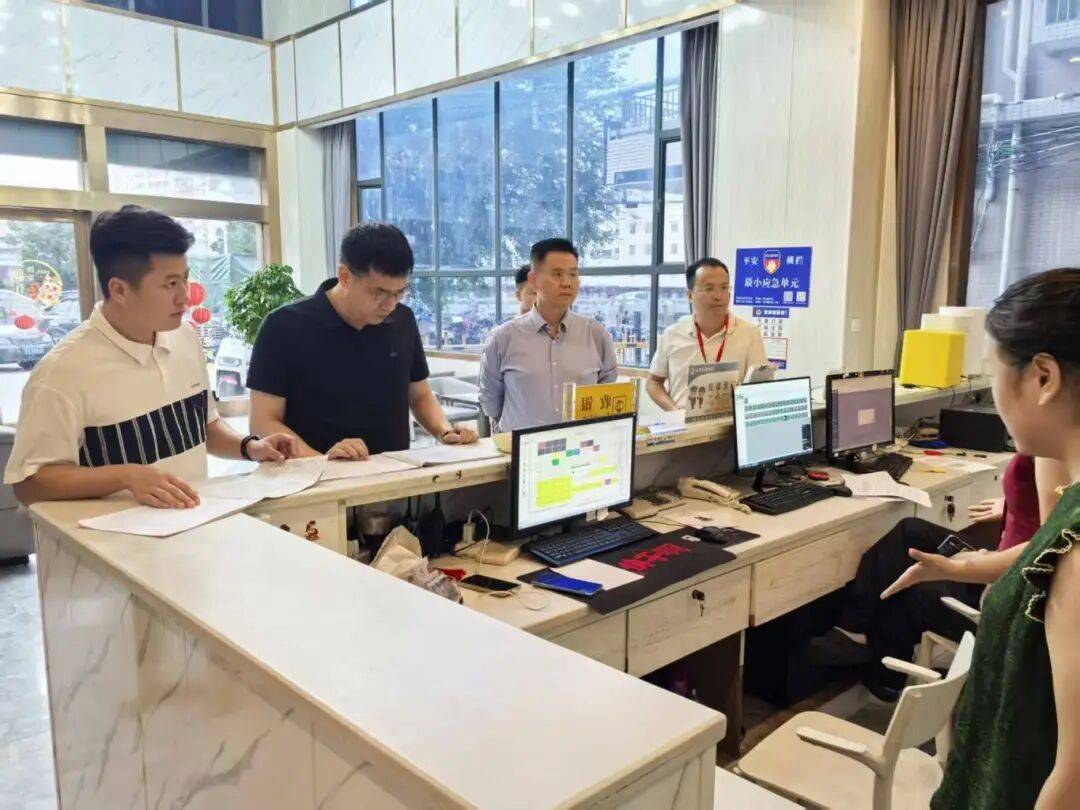 镇党委副书记黄亮到某旅店,现场搜检旅店安闲负担制落实情形,鲜明消防安闲负担人、消防安闲轨制设备情形,以及催促旅店落实消防安闲事情门径。